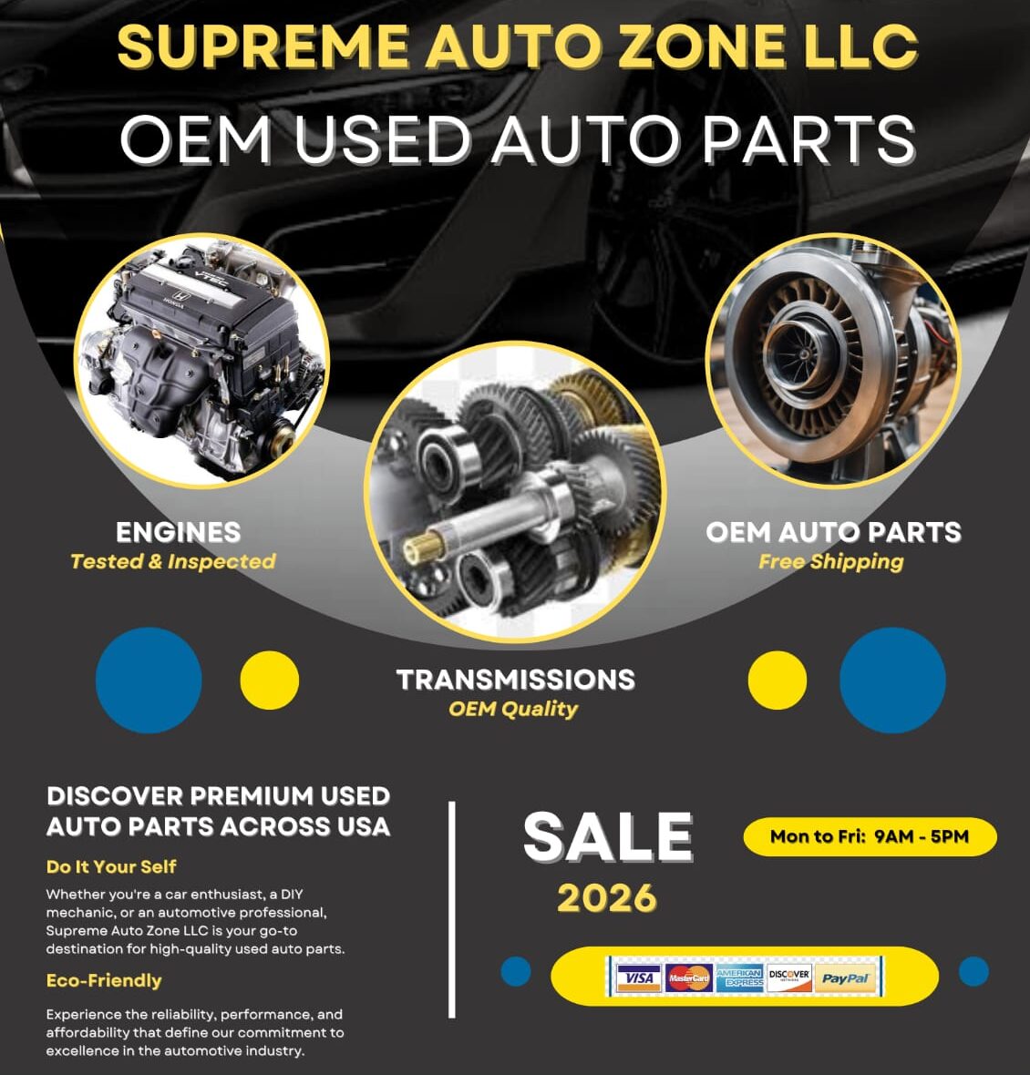 Discover the Top-Tier Used Car Engines and Transmissions for Your Ride by Supreme Auto Zone LLC.